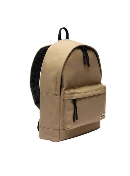 Rucksack Lacoste. Modell NH4099NE. Farbe Öko-Kelp (Beige). Hauptreißverschluss. Außentasche mit Reißverschluss. Für internes Computerfach. Crocodile in Tasche Vorderteil. Recycelter Polyesterstoff. Abmessungen 32 x 42 x 13.