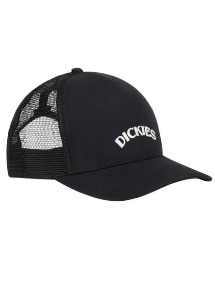 Dickies Cap. Schwarze Farbe. Kontrastierendes gesticktes Logo in der Mitte. Rückseite mit atmungsaktivem Gitter. Gebogene und strukturierte Krempe. Verstellbar auf der Rückseite.