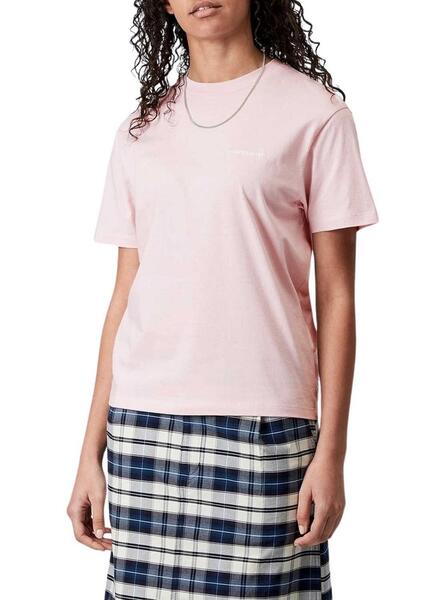 T-shirt Carhartt. Modell Script. Farbe Rosa. Kurze Ärmel. Runder Ausschnitt. Logo bestickt auf der Brust. Regular Fit.