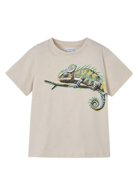 T-shirt Mayoral . Chamaleon Model. Farbe beige. Kurze Ärmel. Runder elastischer Kragen. Aufdruck auf der Brust.