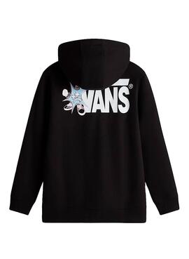 Vans Kapuzenpullover. Modell Super. Farbe schwarz. Reißverschluss. Kapuze. Seitentaschen. Markenetikett an der Seite. Logo auf der Brust und auf dem Rücken gedruckt. Details in Weiß.