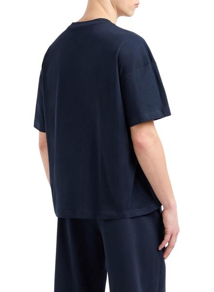 T-Shirt Emporio Armani. Modell EA7 Logo. Farbe Marineblau. Runder Halsausschnitt. Kurze Ärmel. Lockere Passform. Logo in Ton auf der Brust mit Relief.