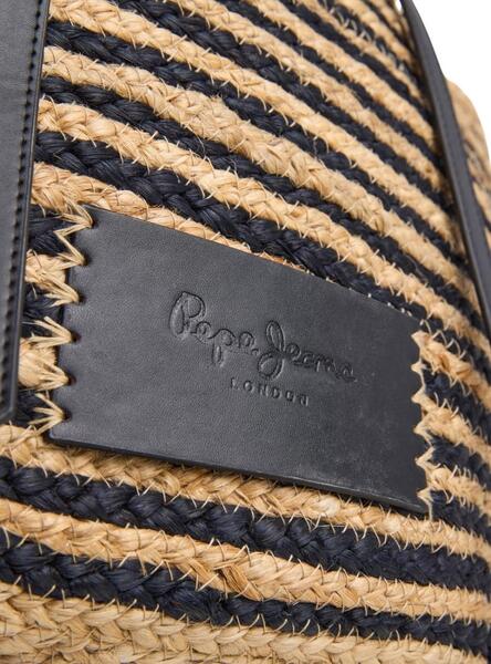 Handtasche Pepe Jeans . Modell Pamela. Natürliche und schwarze Farbe. Verschluss mit Kunstlederband. Doppelte obere Henkel. Gestreiftes Muster. Jutestil. Graviertes Logo. Maße: 62 cm x 30 cm x 38 cm.