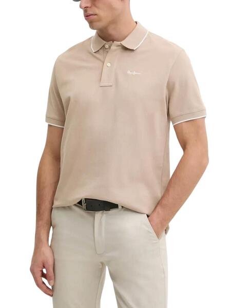 Polo Pepe Jeans. Modell Hans. Farbe beige. Kontrastdetails am Kragen. Markenlogo auf der Brust. Knopfleiste mit 2 Knöpfen. Regular Fit. Kurze Ärmel.