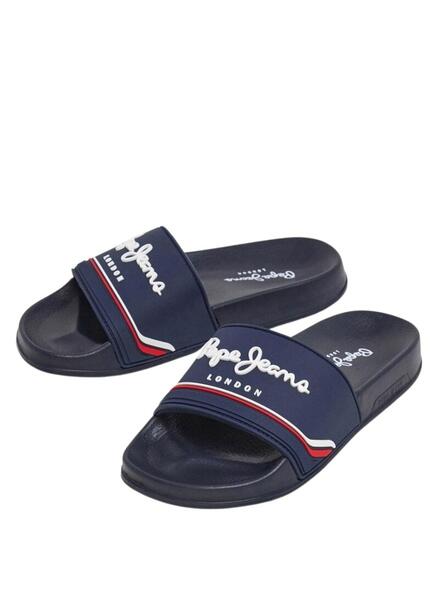 Flip-Flops Pepe Jeans . Modell Slider. Marineblau. Erhöhtes Logo in Weiß und Rot. Anatomische Sohle. Feuchtigkeitsbeständig.