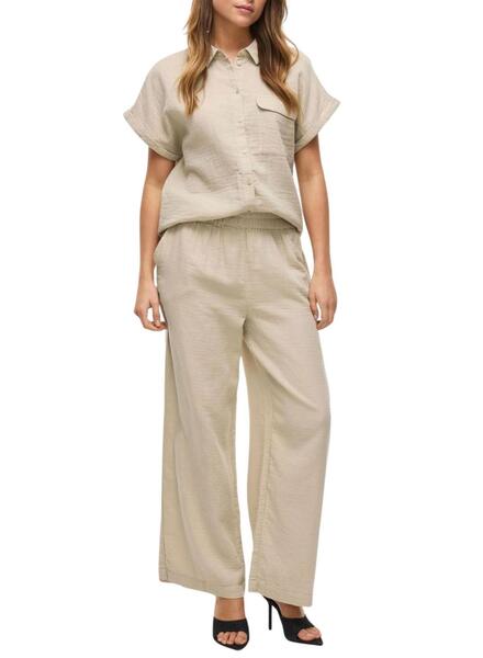 Bluse Vila Vilania kurzarm in toastfarben für Damen.