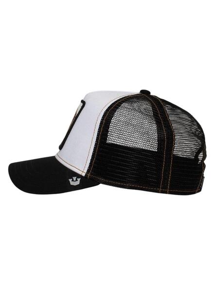 Mütze Goorin Bros. Löwenpatch auf der Vorderseite. Frontpanel in Weiß. Schwarzer Schirm. Verstellbarer Verschluss auf der Rückseite. Hinterteil aus Netzstoff.