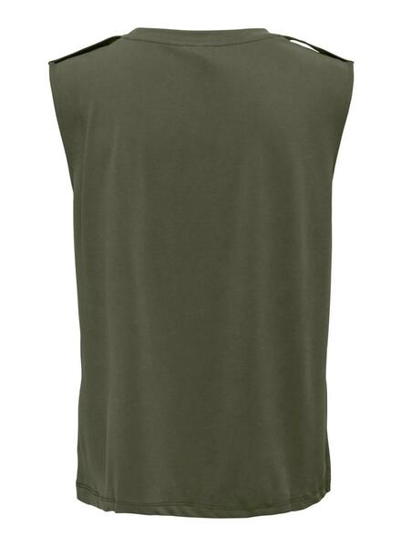 T-Shirt Only. Modell Free. Satinstoff. Farbe grün. Ärmellos. Schulterklappen. Lockere Passform. Runder Ausschnitt. Reguläre Passform. Raffungsdetail an den Schultern.