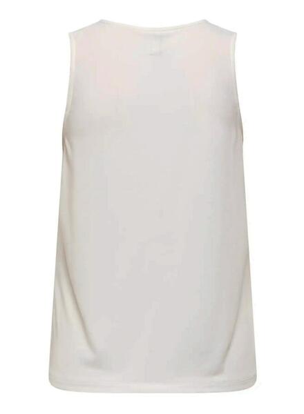 T-Shirt Only. Modell Free. Farbe gebrochenes Weiß. Runder Ausschnitt. Ärmellos. Reguläre Passform. Maritimes Design auf der Vorderseite gedruckt. Details in Korallenfarbe. Schultern mit bestickter Applikation.