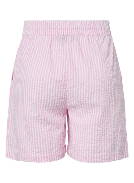 Bermudas Pieces. Modell Sally. Farbe rosa. Gewebt mit vertikalem Streifenmuster. Seitentaschen. Elastischer Bund mit verstellbarem Kordelzug. Pyjamastil. Lockerer Schnitt.