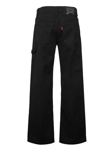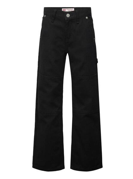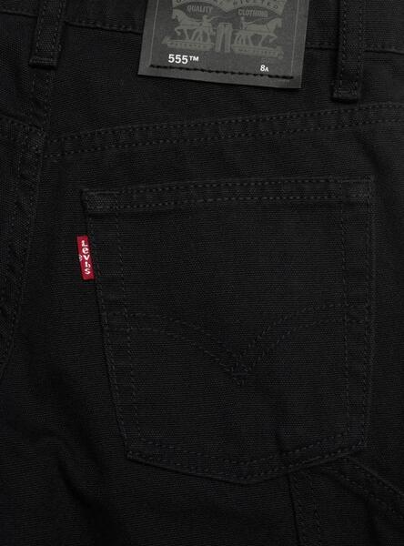 Levis Hose. Modell 555. Schwarz. Sechs Taschen. Gerader Schnitt. Carpenter-Stil. Knopf- und Reißverschluss. Markenetikett an der hinteren Tasche.