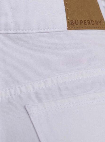 Jeans Superdry. Weiße Farbe. Breites Bein. Zuschneideformat. Hohe Taille. Reißverschluss und Knopfverschluss. Gürtelschlaufen in der Taille. Fünf Taschen. Superdry Logo Patch auf der Rückseite.