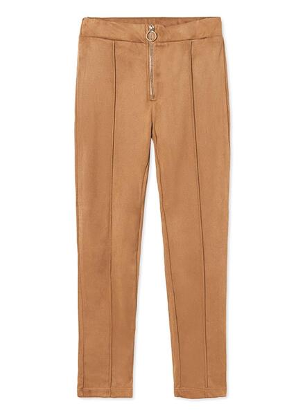 Hose Mayoral. Modell Wildlederlina. Braune Farbe. Reißverschluss. Mittelnaht. Elastische Taille. Enge Passform.