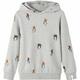 Sweatshirt Name It. Farbe blau. Skater-Print. Likkel Modell. Sweatshirt mit Haube. Etikett auf der Manschette. Gerippte Enden.