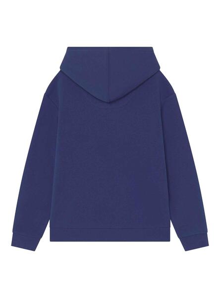 Sweatshirt Levis. Farbe Marine. Rosafarbener Logodruck auf der Brust. Kapuze behoben. Geriffelte Oberflächen. Tasche Känguru.