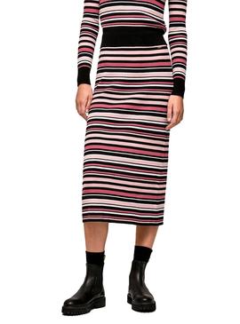 Rock Bleistift Pepe Jeans. Tiffani-Modell Mehrfarbig. Gerippter Stoff. Gestickt nach Streifen. Set passendes Trikot. Enge Passform.
