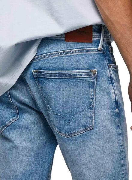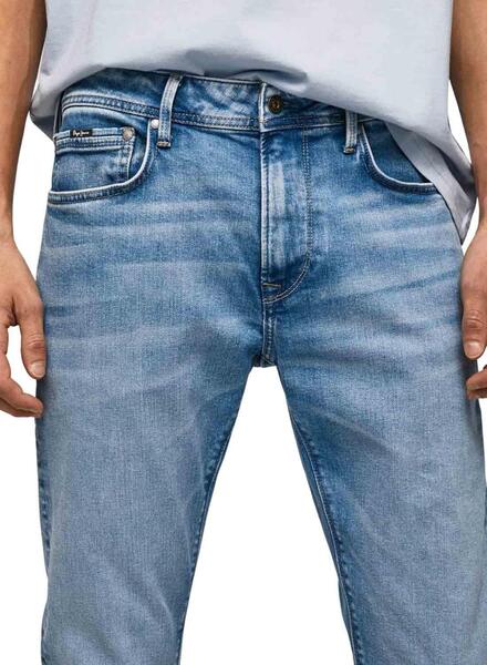 Jeans Pepe Jeans. Stanley-Modell. Farbe blau. mid rise. Regular fit. Gerade geschnitten. Hellblaue Waschung. 5 Taschen. Flexibler Stretch-Denim-Stoff. Nachhaltig hergestellt