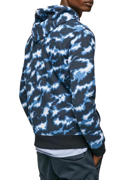 Sweatshirt Tarnung von Pepe Jeans. Angel modell. Farbe Marine. Printed in Tarnung. Kapuze verstellbar mit Kordelzug. Regular fit. Tasche Känguru. Gerillte Enden. Gesticktes Logo auf der Brust. Innenband mit Logo.