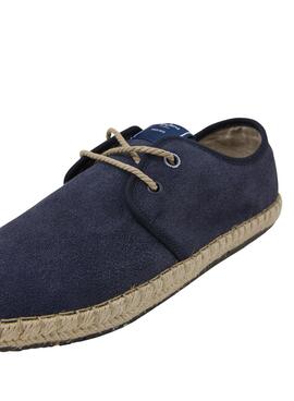 Sneakers Pepe Jeans. Tourist Claic Modell. Farbe Marine. Schnürverschluss. Jute-Zwischensohle. Gummisohle. Markenlogo auf Zunge und Ferse.