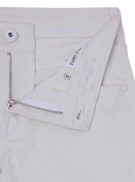 Bermudas Pepe Jeans. Beckett-Modell. Farbe weiß. 5 Taschen. Knopf- und Reißverschluss. Markenpatch auf der Rückseite. Slim fit.
