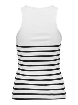 T-Shirt Only. Farbe weiß. Printed-Listen. Ärmellos. Rundhals. Gerippter Stoff. Angepasstes Format. Das Model trägt Größe S.