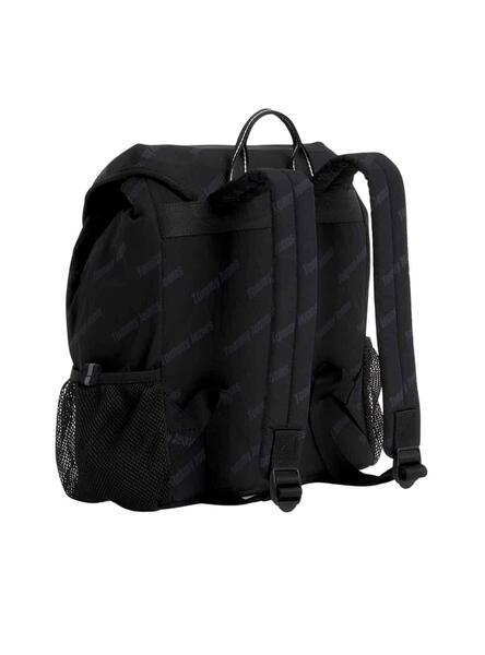 Rucksack mit Tommy Jeans-Logodruck. Verstellbarer Kordelzugverschluss. Überschlag mit Metallverschluss. Griff oben. Verstellbare und gepolsterte Träger. Tasche Innenraum mit Reißverschluss. Zwei Netztaschen. Tommy-Patch am Revers. 28x15x32