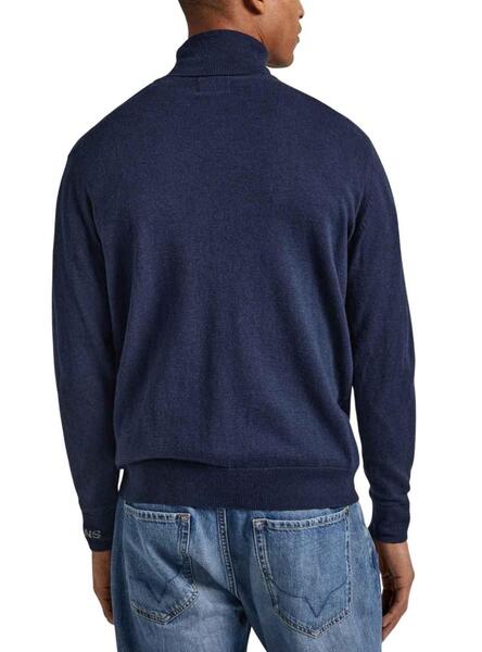 Pullover Pepe Jeans. Modell Andre Schildkröte. Farbe Marineblau. Langer Hals. Ärmel lang. Logo auf der Brust gestickt. Elastische Enden.