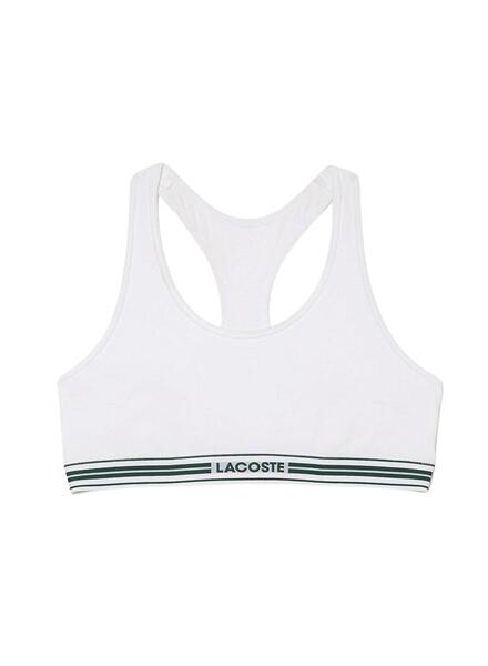 Lacoste-Bralette. Heritage-Modell. Farbe weiß. Details in Grün. Zwei Befestigungsstreifen. Elastischer Stoff. Zurückkreuzen. Mittlere Unterstützung.