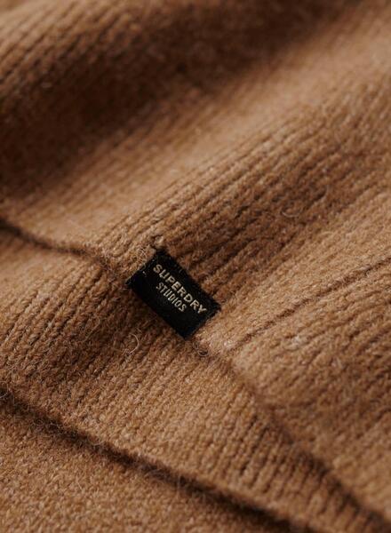 Kleid Superdry. Modell V-Neck Knit. Farbe braun. V-Ausschnitt. Gefallene Schultern. Weit über dem Knie. Weicher Baumwollstoff.