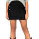 Rock Only. Farbe schwarz. Glänzender Stoff. Angepasst. Kurzformat. Dekorative Knöpfe am vorderteil. Taille von Gummi. Das Model trägt Größe S.