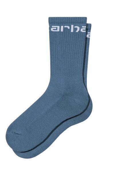 Socken von Carhartt. Farbe blau (Sorrent / Weiß). Entspricht Größe 39 - 46 EU. Logo oben. Weiches Strickgewebe. Französische Frottee.