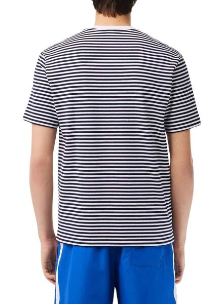 Marineblau gestreiftes Lacoste T-Shirt für Männer