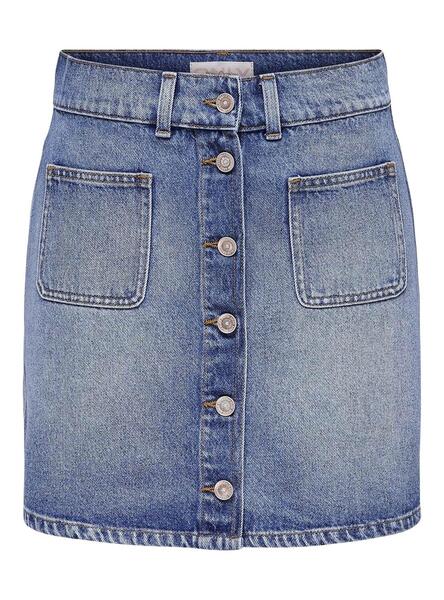 Rock Only. Modell Heather. Blaue Farbe. 2 Taschen. Knopfverschluss. Denim-Gewebe.