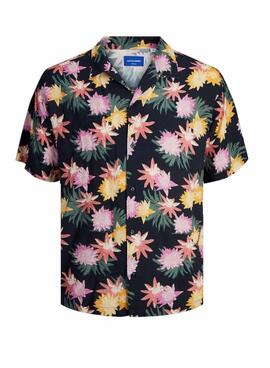 Jack and Jones Hemd. Modell Luke. Marineblau Farbe. Multicolor Blumenmuster. Hemdkragen. Knopfverschluss. Kurzarm. Leichtes Gewebe.