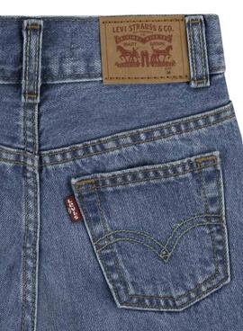 Bermuda Levis. Skate-Modell. Blaue Farbe. 5 Taschen. Verschluss mit Knopf. Reißverschluss. Markenpatch auf der Rückseite. Mit Gürtelschlaufen.