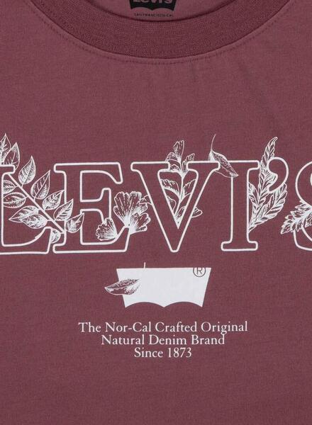 T-Shirt Levis. Modell Natural. Farbe Granat. Kurzarm. Rundhalsausschnitt. Grafischer Druck auf der Brust. Regular Fit.