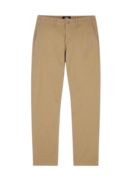 Hose Dickies. Modell Kerman. Farbe beige. Normale Leibhöhe. Leicht eng geschnittene gerade Passform. Gewebtes Etikett hinten. Seitentaschen. Paspeltaschen hinten.
