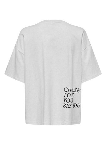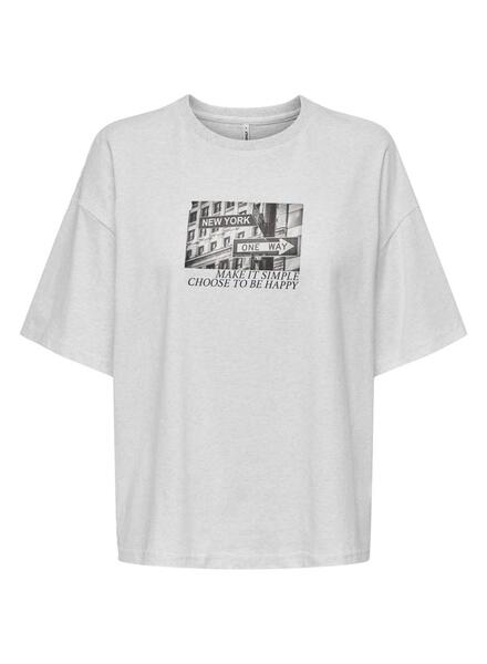 T-Shirt Only. Modell Cassie. Melierter grauer Farbton. Runder Ausschnitt. Kurze Ärmel. Lockerer Sitz. Bild von NYC auf der Brust gedruckt. Nachricht auf der Rückseite gedruckt.