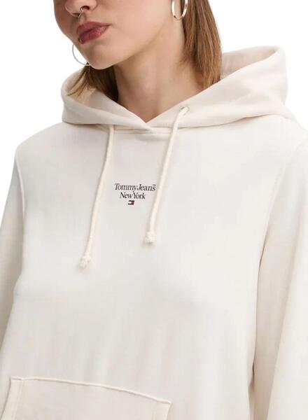 Sudadera Tommy Jeans Essential Logo mit Kapuze in Beige für frauen