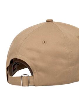 Tommy Jeans Mütze. Farbe beige. Aus Baumwolle gestrickt. Gebogener Schirm. Verstellbarer Verschluss auf der Rückseite. Patch mit der Tommy Jeans Flagge auf der Vorderseite. Einheitsgröße.