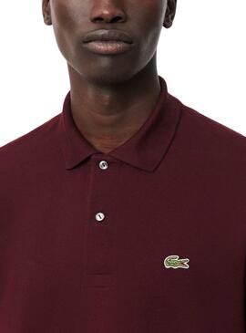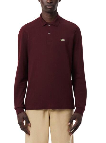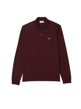 Langarm-Lacoste-Polo-Shirt in Burgunderrot für herren