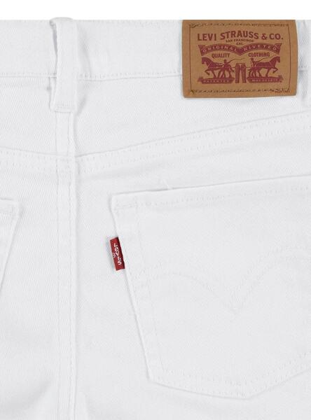 Levis Jeans. Modell 726. Weiß. Eng von der Hüfte bis zum Oberschenkel. Elastischer Denim-Stoff. 5 Taschen. Verstellbarer Bund. Hoher Bund. Ausgestelltes Bein.