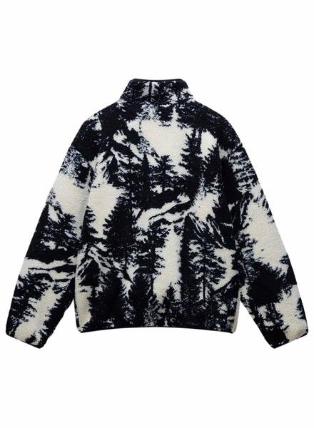Napapijri Polarjacke. Reißverschluss. Schwarz und beige bedruckt. Lange Ärmel. Lockerer Schnitt. Seitentaschen mit Reißverschluss. Markenlogo-Patch auf der Brust.