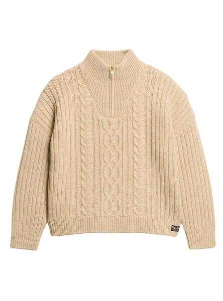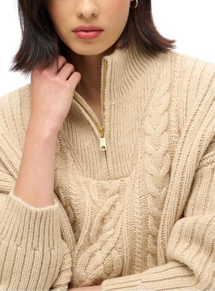 Pullover Superdry Cable Zip Beige für Frauen
