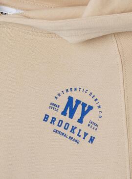 Kapuzenpullover Name It. Modell Obando. Cremefarben. Mit Kapuze. Lange Raglanärmel. Rippenbündchen. Rippenbund. Lockerer Sitz. Grafikdesign auf der Kapuze und auf der Brust.