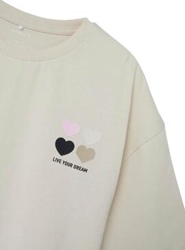 T-Shirt Name It. Modell Follie. Farbe Weiß. Weich und bequem. Behält die Form. Frontdruck. Lockerer und kurzer Schnitt. Tiefe Armlöcher und weite Ärmel. Rundhalsausschnitt. Logo Lebe deine Träume.