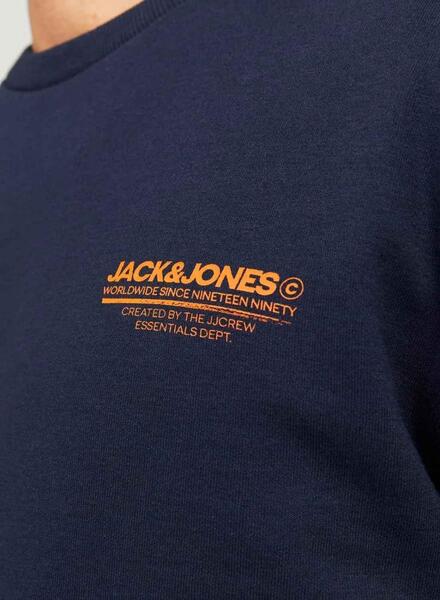 Kapuzenpullover Jack and Jones. Marineblau. Weicher Stoff. Runder Ausschnitt. Lange Ärmel. Markenlogo kontrastierend auf der Brust. Regular Fit. Gerippte Abschlüsse. Das Modell trägt Größe M.