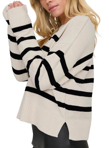 Jersey Only Lelly beige mit schwarzen Streifen für Frauen.