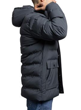 Parka Klout. Modell Santander. Gesteppt. Farbe Grau. Mit verstellbarer Kapuze. Reißverschluss und Knopfleiste. Hoher Kragen. Reguläre Passform. Taschen mit Klappen an der Hüfte. Rundes Markenlogo auf einem Ärmel. Das Modell trägt Größe 50. Hergestellt und entworfen in Spanien.