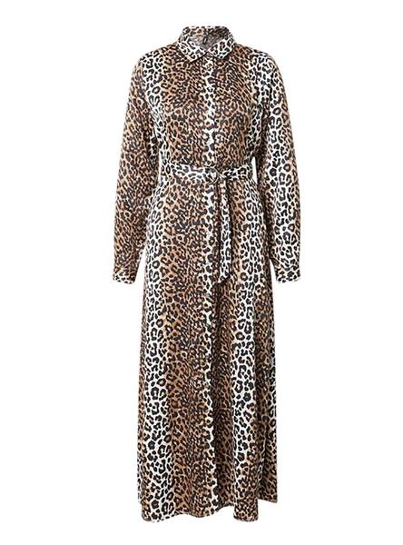 Kleid Only. Hemdkragen. Leopardenmuster. Lange Ärmel. Midi-Länge. Zurückhaltendes Format. Taillenweite verstellbar mit Gürtel. Vorderverschluss mit Knöpfen.